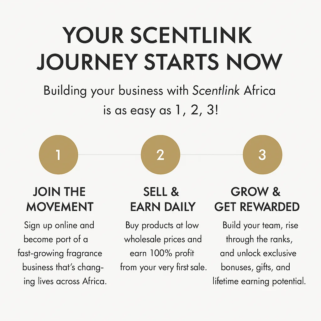 Scent Link Africa is for anyone with a dream to earn more and live better — whether you’re looking to supplement your income, replace it entirely, or achieve financial independence on your own terms. From side hustlers to empire builders, Scent Link Africa empowers you to turn passion into profit and ambition into achievement.